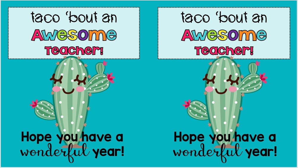 I created these thank you cards, favor tags and invitation for our end of the year teacher appreciation Taco Bar Fiesta. Then I created another set for a Back to School/Welcome Back event. You can use them for a family fiesta, taco bar, thank you notes or gift/favor tags. Enjoy!